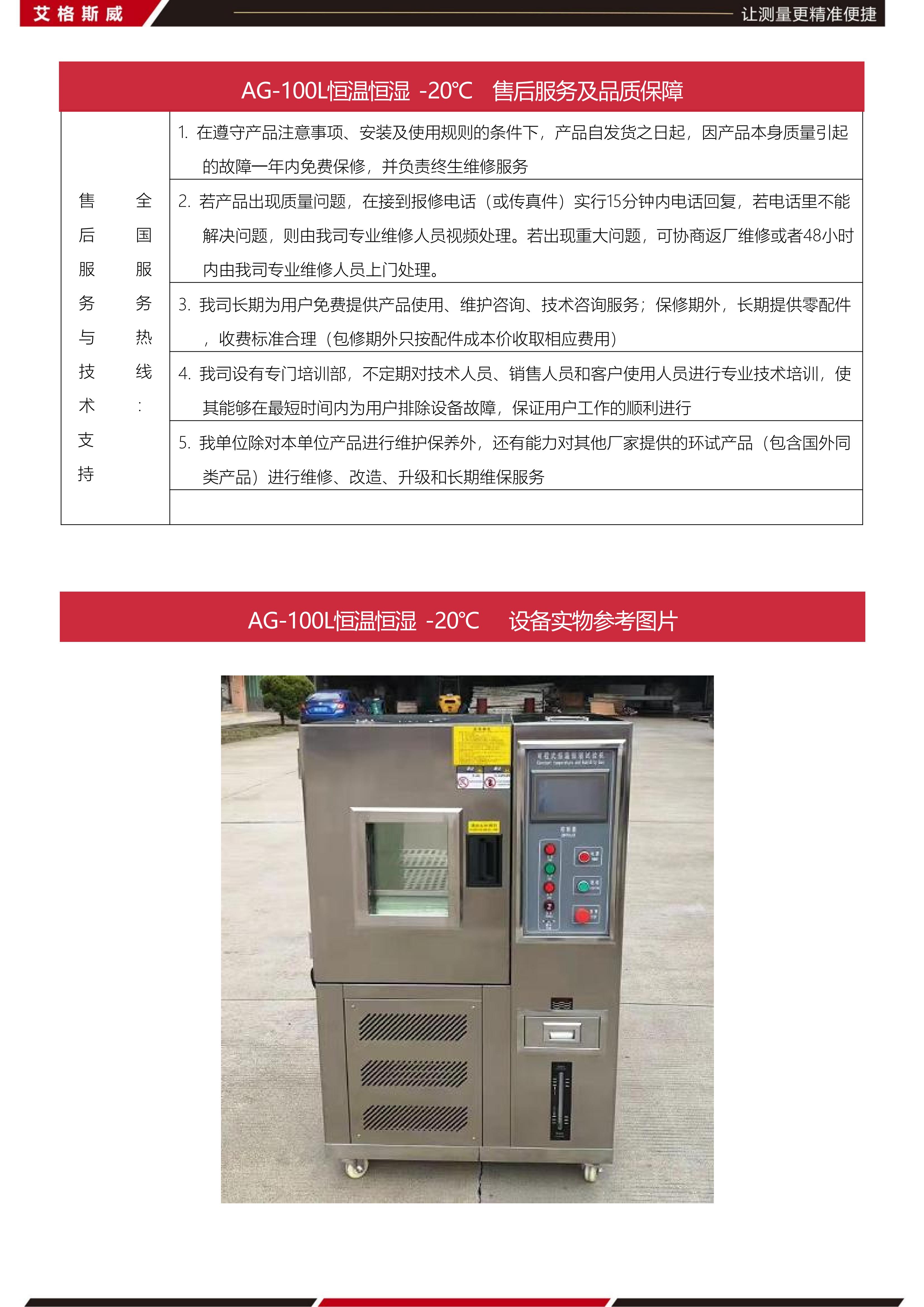 AG-100L艾格斯威恒温恒湿 -20℃测试环境条件:环境温度为+5~+28℃、相对湿度≤85%、试验箱内无试样条件下。